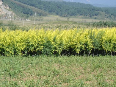 从2004年引入辽宁,经观察生长良好,性 状表现稳定.整株叶片金黄.初春展叶恰似连翘开花.金光 闪烁.鲜艳夺目.其整个生长期新叶均为金黄色.