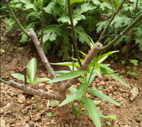 从下面长出来的叶子像是桃树叶片。
