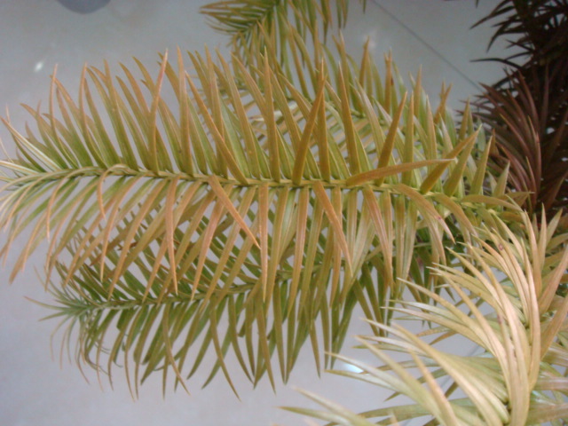 杉木黄化病又称缺绿症,为生理性病害。杉木在碱土和盐碱土壤上栽植,常发生枝叶失绿黄化现象。因在该类土壤中往往缺乏可被植物吸收利用的可溶性铁离子,当其土壤中含量低到一定程度时,导致杉木枝叶缺铁而失绿,发生生理黄化病,轻者影响生长,重者甚至黄化致死。其防治方法:选择移栽地时,尽可能不要选择碱性或微盐碱地块移栽,或在整地时增施过磷酸钙和有机基肥,以降低土壤PH值。该病发生时,可用1:80的硫酸亚铁溶液浇灌。浇灌时防止药液洒在枝叶上,否则应立即用清水冲洗,避免药害。亦可用0.5%—1.0%的硫酸亚铁液进行叶面喷治,促进叶面吸收外来铁元素,使其转绿恢复正常生长。