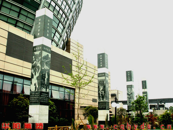 此工程为重庆华阳雕塑公司为重庆市政协设计制作的巴渝文化柱浮雕。