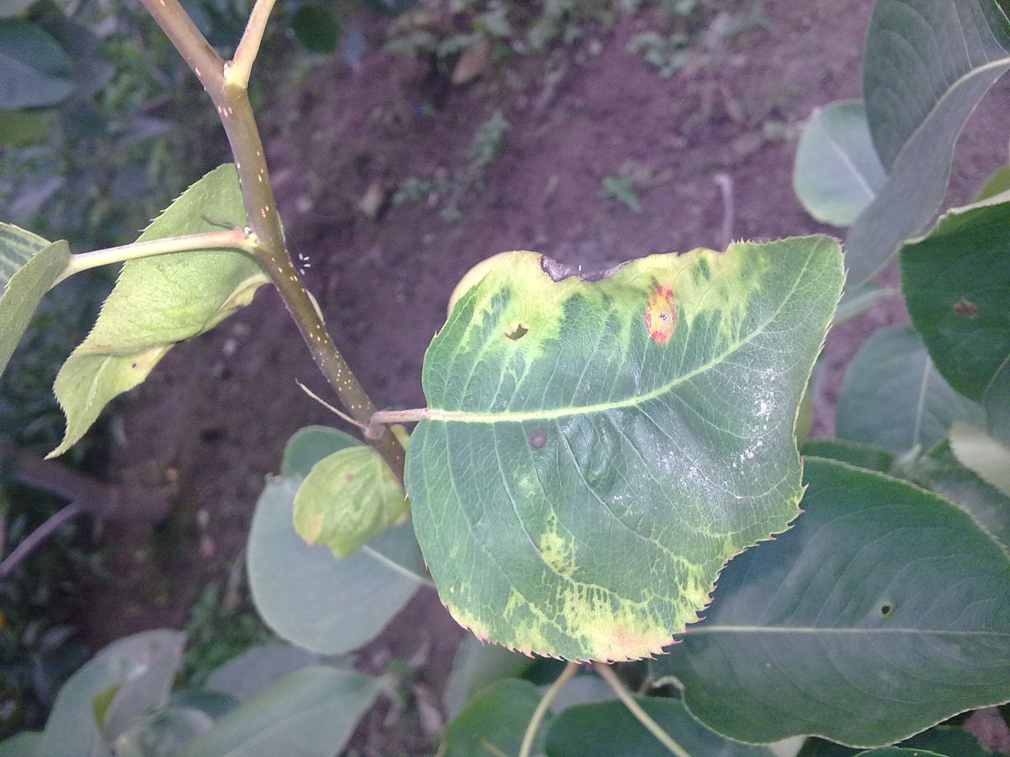 图2-38 梨白粉病为害叶片症状