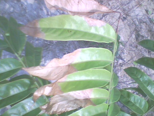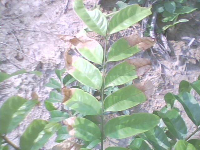专家,你们好,我5月份种了一批仁面树,现在小树有部分叶子呈半枯叶形态,是不是一种病害?如何防治?谢谢,下面是病害图片: